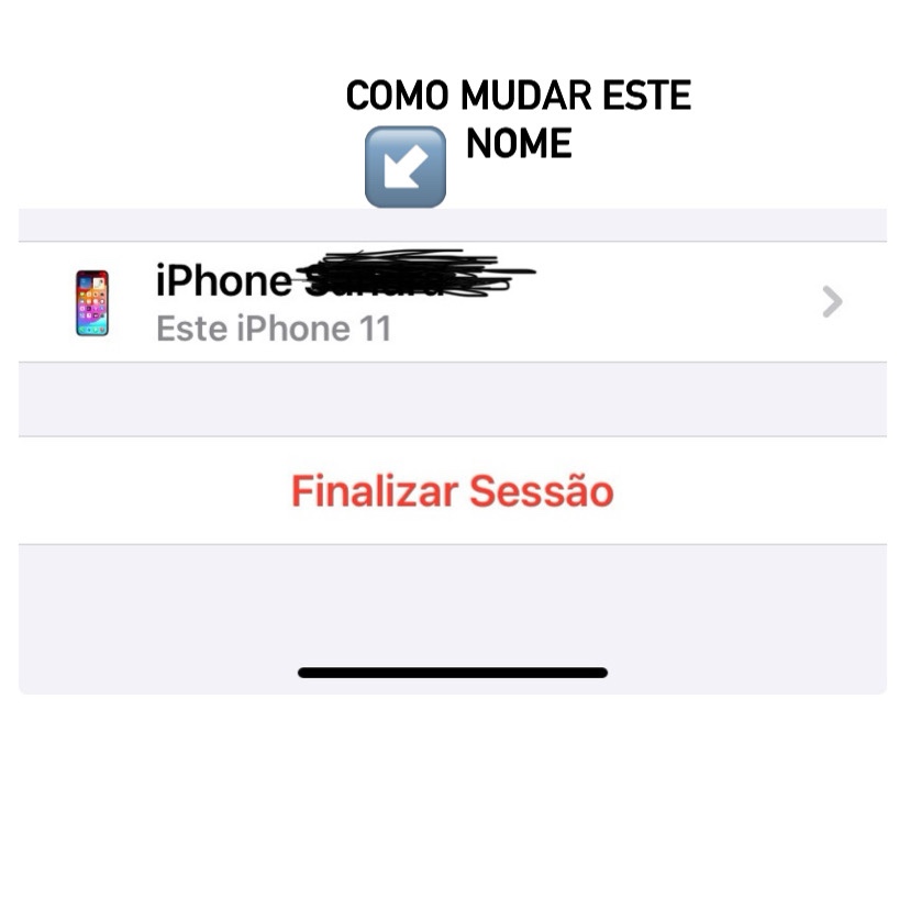 Fiz o backup do dispositivo a partir do iCloud no computador da minha irmã e o dispositivo (iPhone) ficou com o nome dela, ex.: iPhone Fulana. Tem como alterar? Nota.: Não é o nome do aparelho nos dados pessoais que quero alterar, é o nome do dispositivo que fica acima do nome do modelo do aparelho, ao lado da figurinha do iPhone, acima da barra de informação:”Finalizar Sessão” 👇🏼
