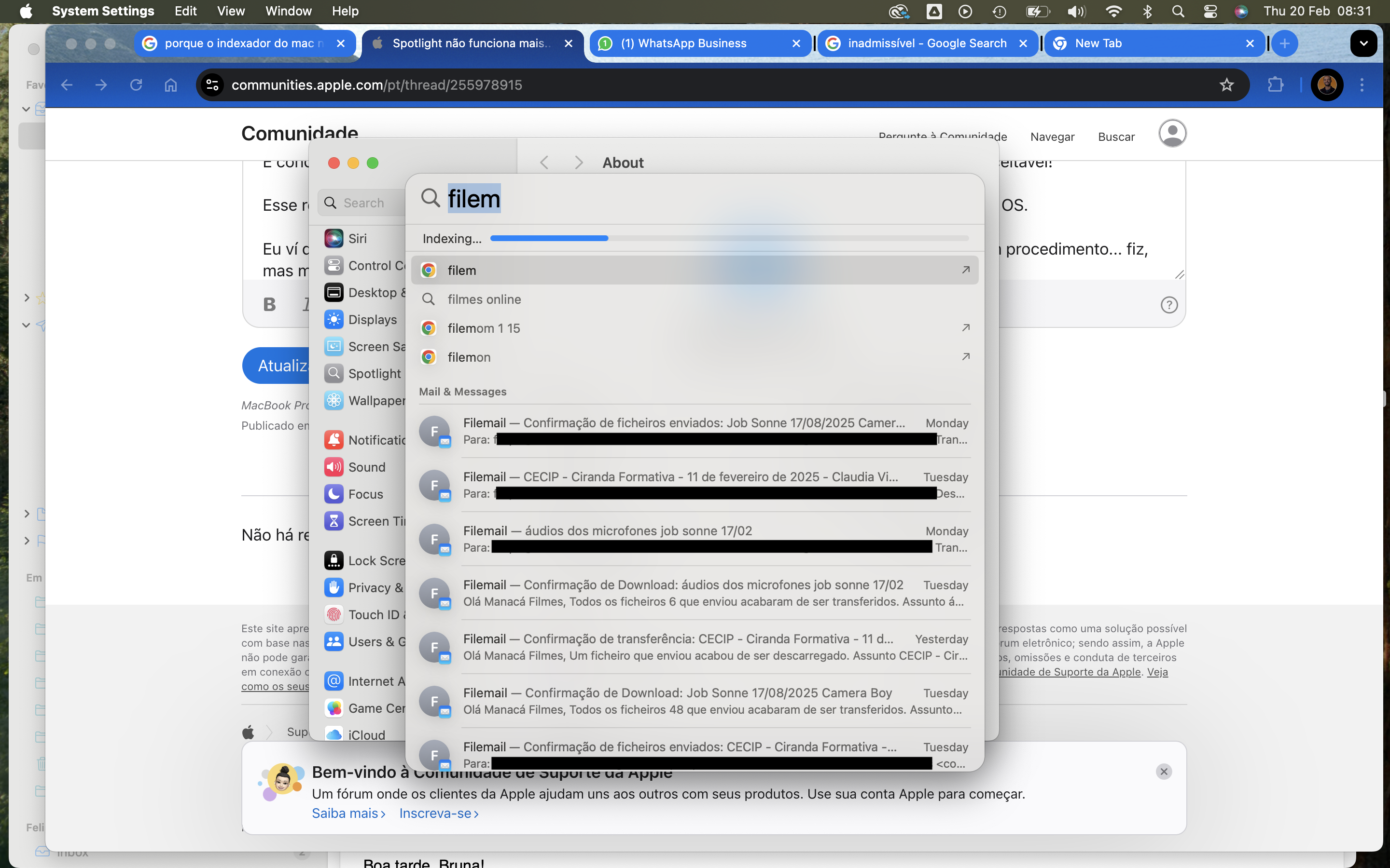 Esse BUG do spotlight precisa sser resolvido urgente! não dá para ficar assim. De fato ter um mac, ainda mais no Brasil, não é algo barato para que os dispositivos retrocedam em funcionalidades que antes funcionavam perfeitamente.