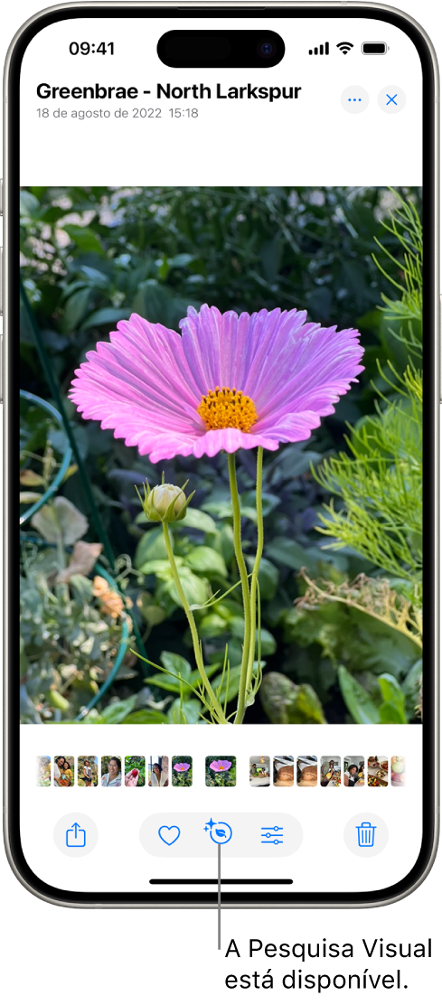 A Pesquisa Visual está disponível em modelos compatíveis e pode ser usada no app Fotos, no Safari, na Visualização Rápida e em outros.