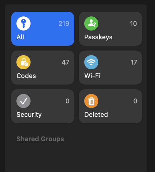 Após atualização para macOS Sequoia 15.4.1 e iOS 18.4.1, notei que o app Passwords no MacBook Pro não exibe as senhas que estão organizadas em grupos personalizados.