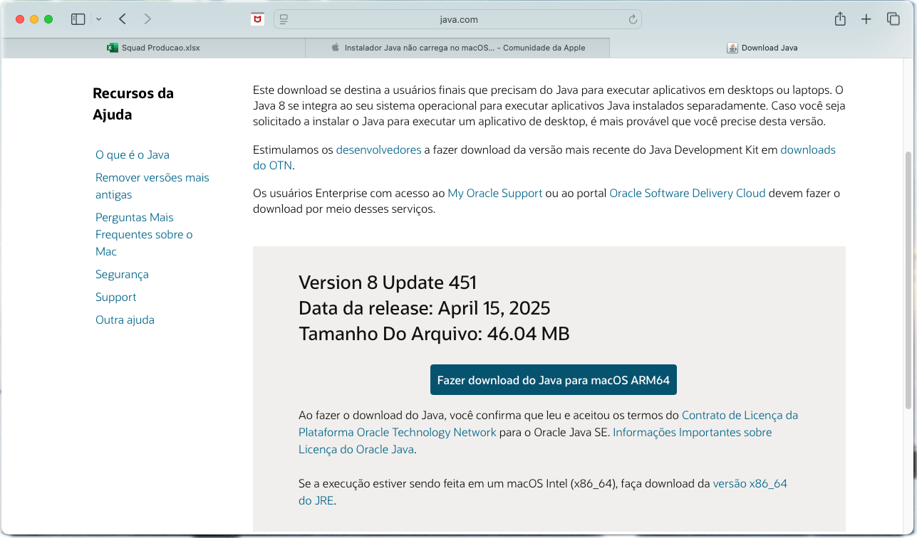 Instalador Java não carrega no macOS Sequoia 15.4.1