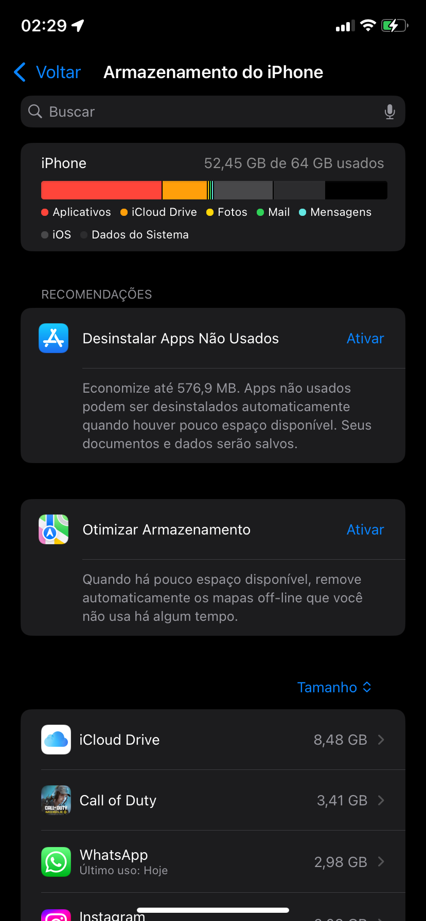 Se já estiver ativado e o problema persistir, você pode tentar reiniciar o iPhone. Às vezes, isso ajuda o sistema a recalcular e otimizar o espaço. Se ainda assim o espaço não for liberado, talvez seja necessário desativar e reativar o iCloud Drive por lá, mas faça isso com cuidado para não perder nada.