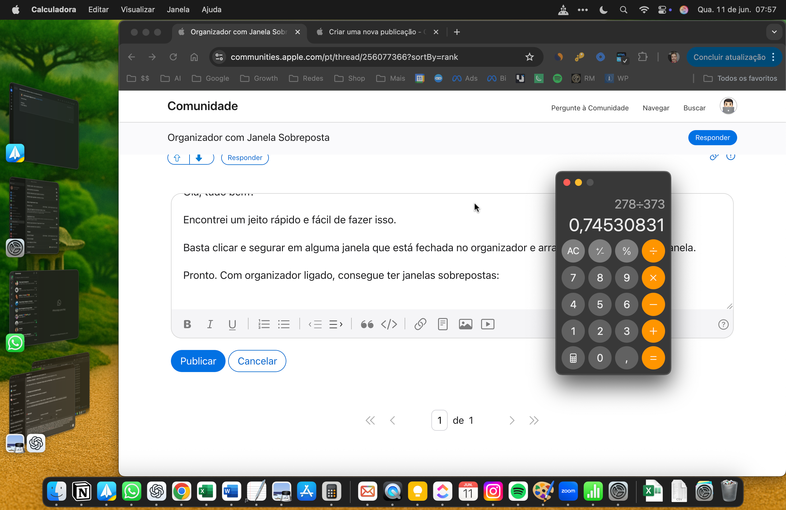 Tentei clicar no botão verde do whatsapp e coloca a tela em vários formatos (como à esquerda e à direita).