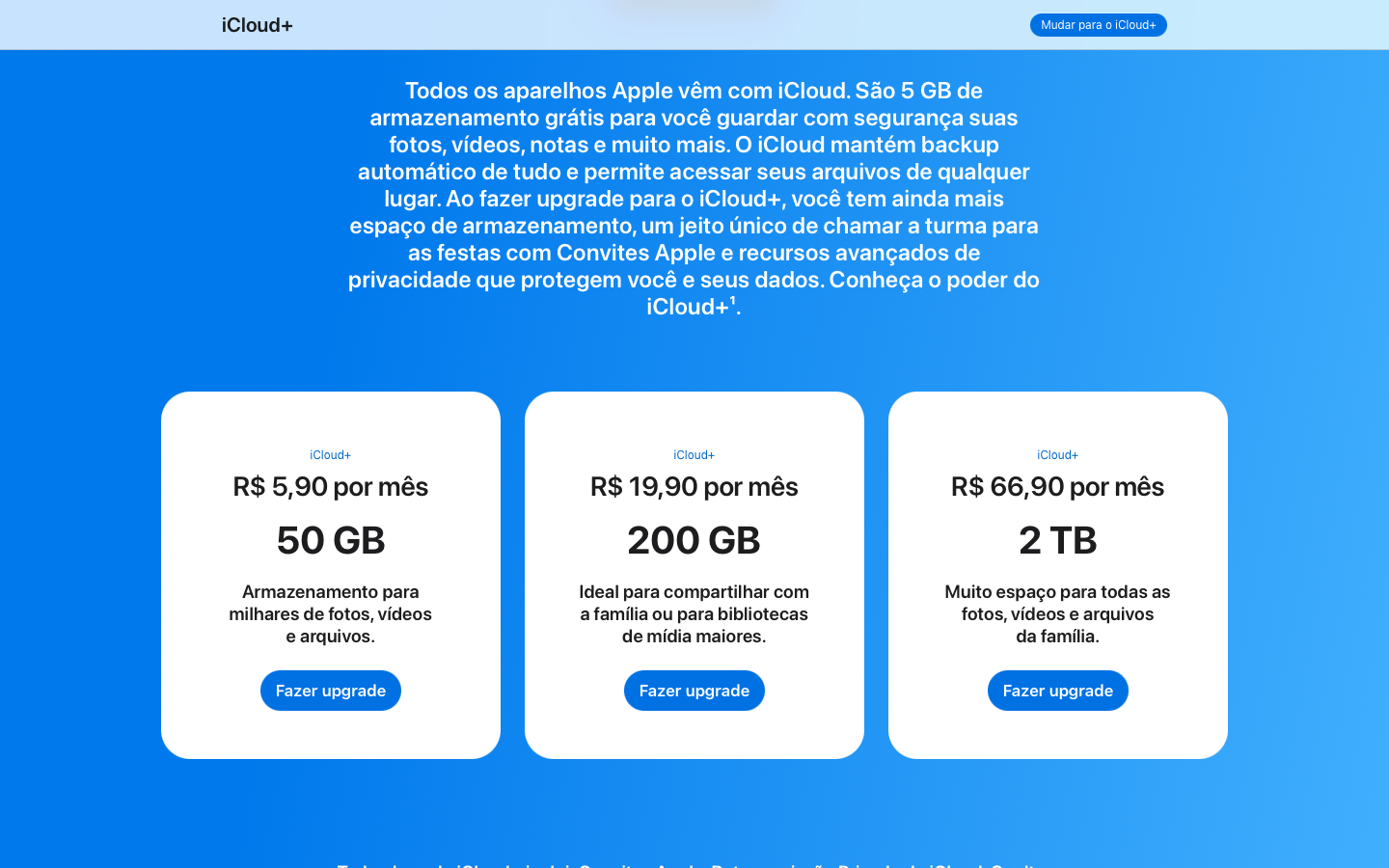 A primeira dica essencial. Acesse a página oficial da Apple para ver os planos do iCloud+.