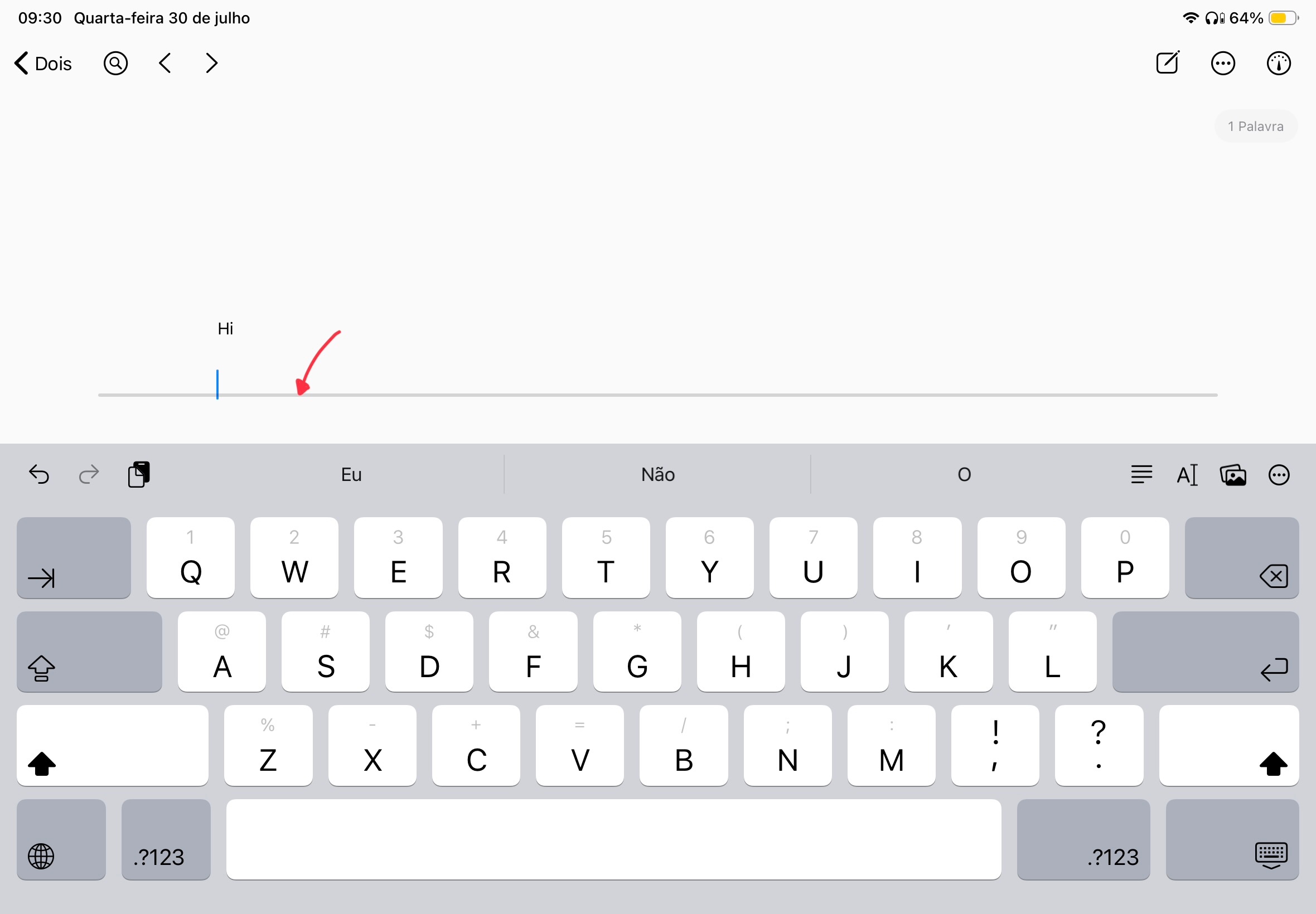 • Ela não interfere no uso do aparelho, e você notará que ela não é permanente — pode aparecer e desaparecer dependendo do app que você está usando e do contexto da escrita.