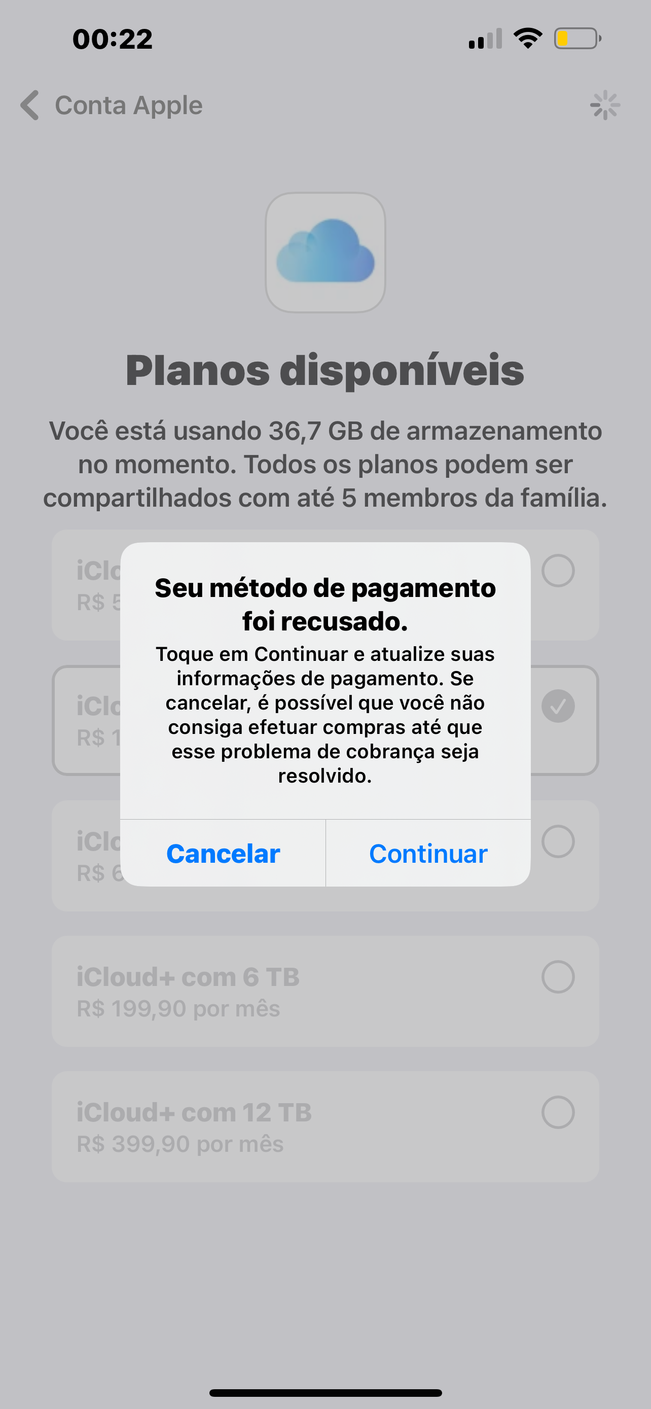 Se a forma de pagamento for recusada na App Store ou iTunes Store