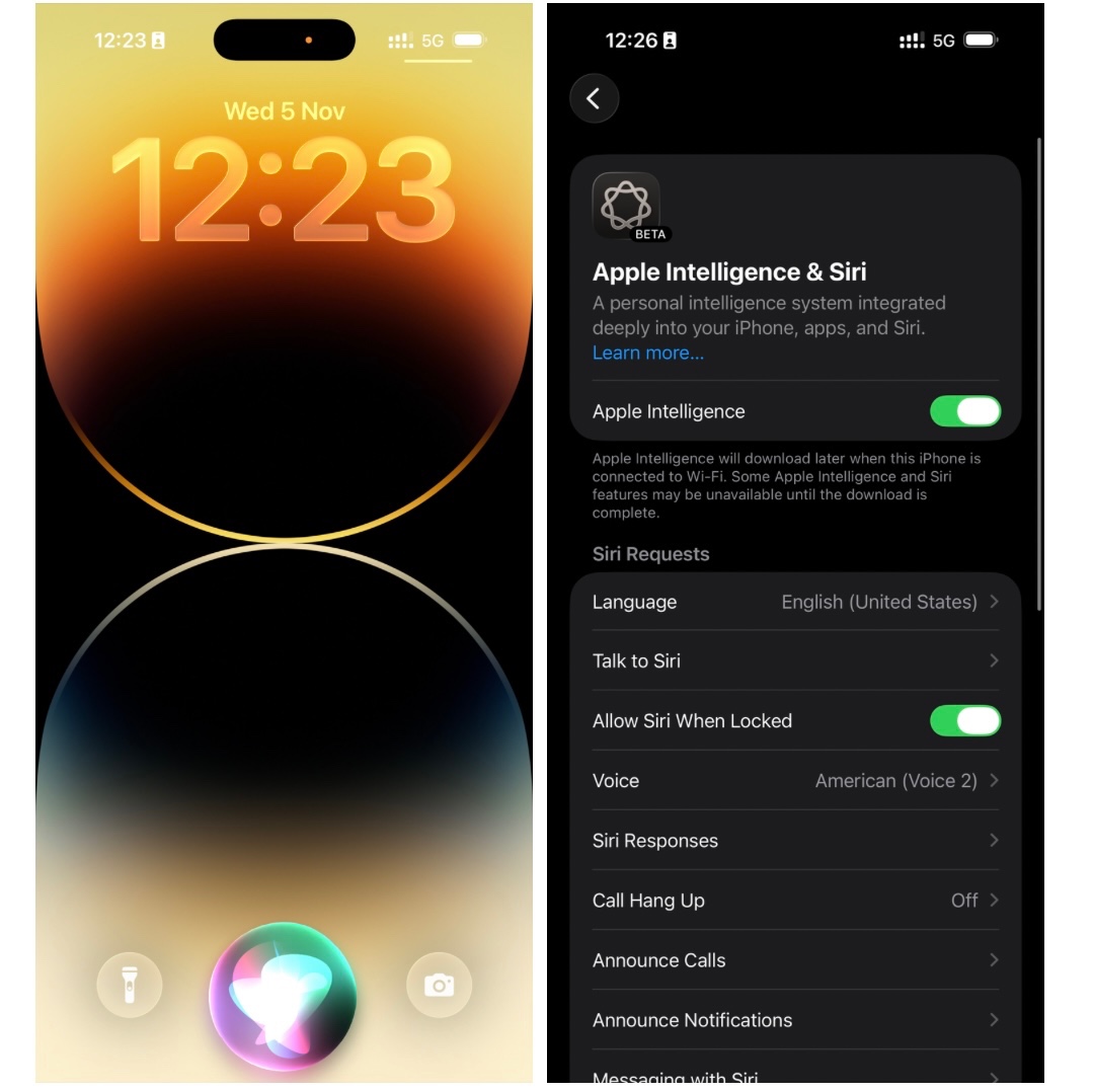 Se você alterar o idioma da Siri, a Apple Intelligence poderá ficar indisponível até que o novo idioma do Siri seja totalmente baixado e corresponda ao idioma do dispositivo. Se você desativar a Apple Intelligence, os modelos no dispositivo serão removidos.