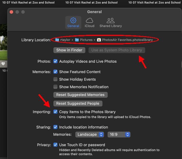 By the way, if you have multiple Libraries, you would probably benefit a lot from using the trusted 3rd party app PowerPhotos ($40.) Most of us do. PowerPhotos is always open when I'm using Photos.