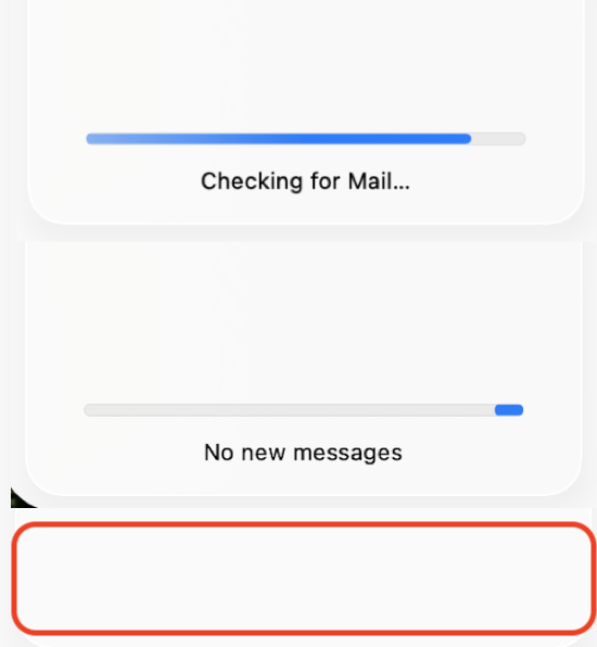 how to get rid of the "downloading messages" progress bar which zips back and forth in Mac mail in Tahoe?
